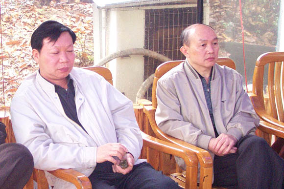 | 谢自强馆长支部书记(左一)与黄有泰副馆长(右一)在座谈会上 |