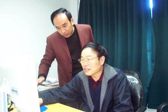 中国社会科学院图书馆长黄长著与我校副校(院)长雷国珍视察我馆电子阅览室。