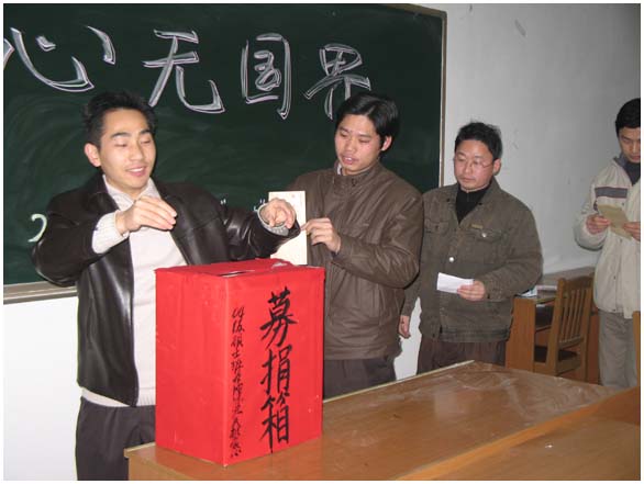 东南亚海啸灾难发生之后,牵动了中国各族人民的心,全国范围内迅速掀起了向东南亚受灾国家和人民捐款献爱心的活动。中共湖南省委党校湖南行政学院2004级硕士研究生班22名同学在支部倡议下,也自发开展了向灾区献爱心活动。