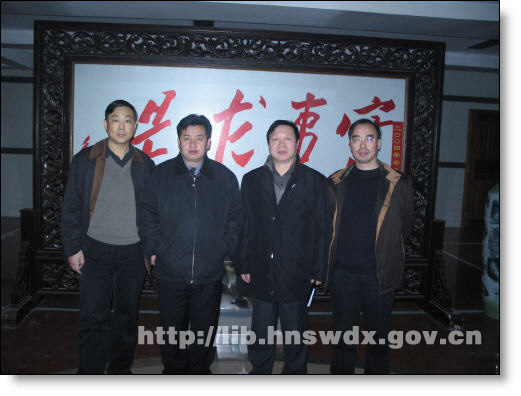 永州市委党校欧阳冬子副校长(左二)与我馆馆长谢自强(右二)、副馆长刘光辉(右一)、采编一部主任罗丹(左一)在永州市委党校合影 |
