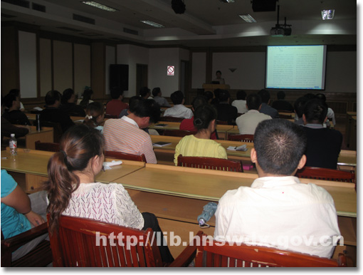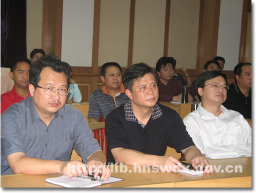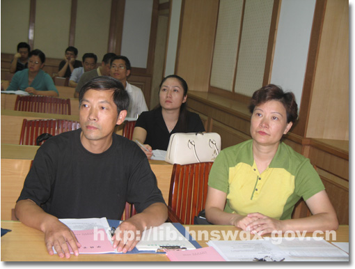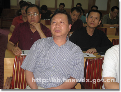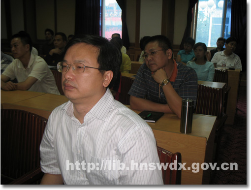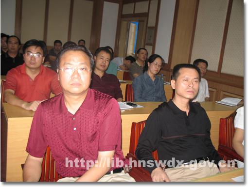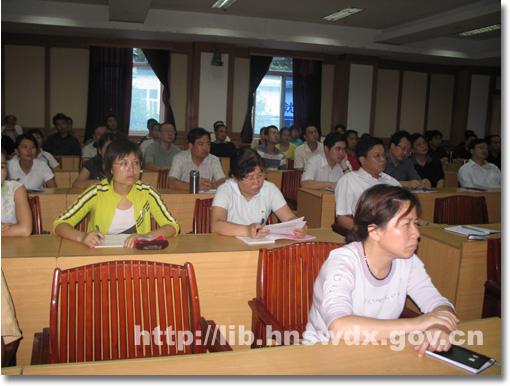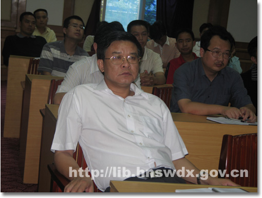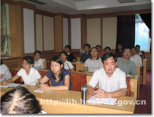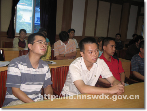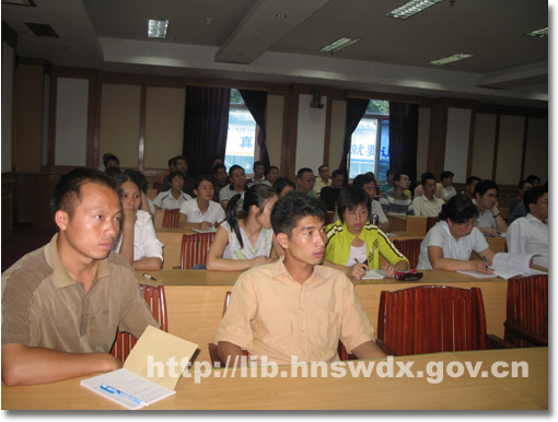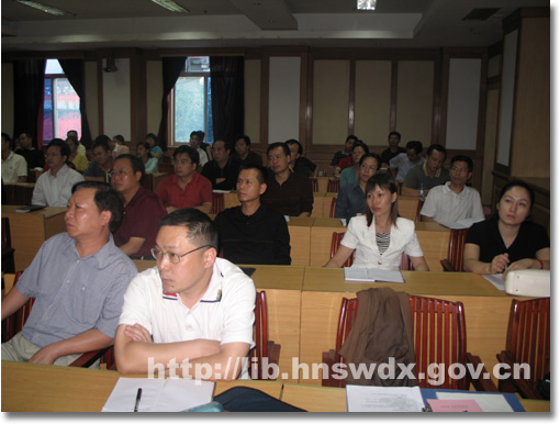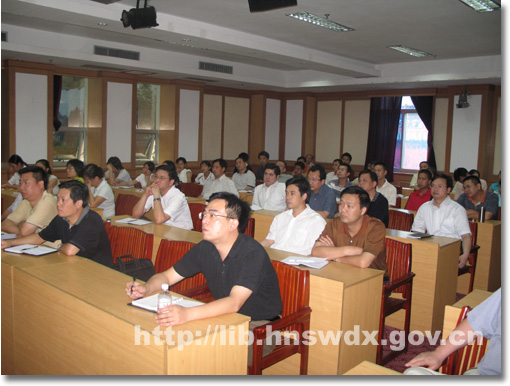 2006年9月5日下午,在报告厅开展了新学期第一期数字图书馆读者使用培训。参加这次培训的为新学期中青班和民干班学员。本次培训由数据技术部副主任王霞老师为大家授课。工商管理教研部主任吴厚庆教授、学员部主任兼省民干校校长伍晓华处长、馆长谢自强教授、副馆长黄有泰教授也参加了此次培训。