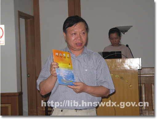 馆长谢自强教授向新学员介绍我馆发行的内刊《理论集萃》 |
